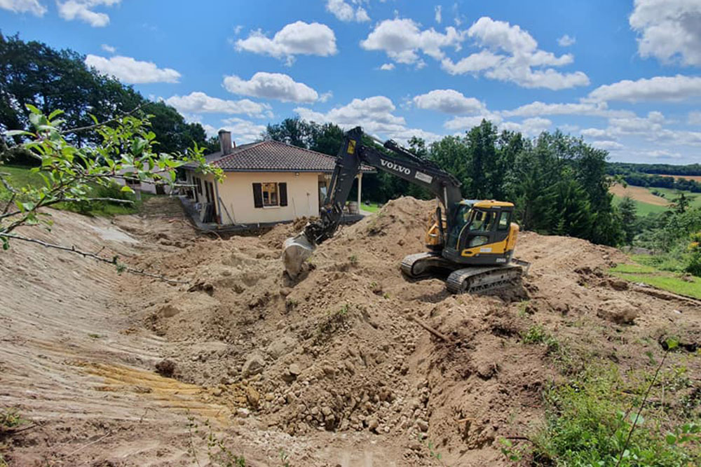 Nous effectuons tout type de travaux TP, terrassement, démolition, évacuation et recyclage des gravats, assainissement collectif et privé dans le Lot et le Tarn et Garonne.